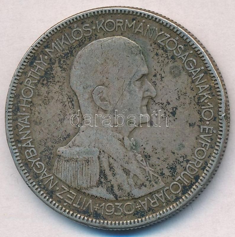 1930. 5P Ag "Horthy jobbra" T:3 ph., patina