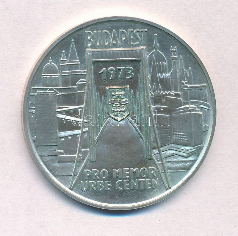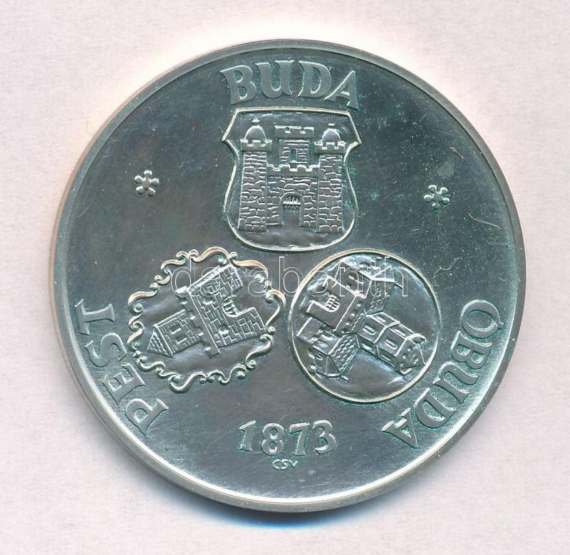 Csúcs Viktória (1934-) 1973. "Pest-Buda-Óbuda egyesítésének centenáriuma / Pro memor urbe centen" Ag emlékérem (25,19g/0.800/42,5mm) T:1-