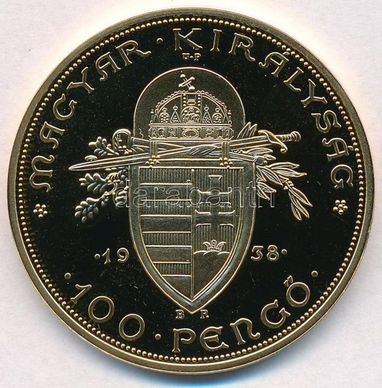 1938. 100P aranyozott Cu utánverete, tanúsítványa T:PP