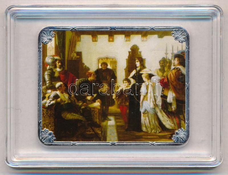 DN "Magyar Festészet Remekei - Madarász Viktor: Zrínyi Ilona a vizsgálóbíró előtt, 1859" ezüstözött Cu emlékérem multicolor festéssel, tanúsítvánnyal (46x36mm) T:PP