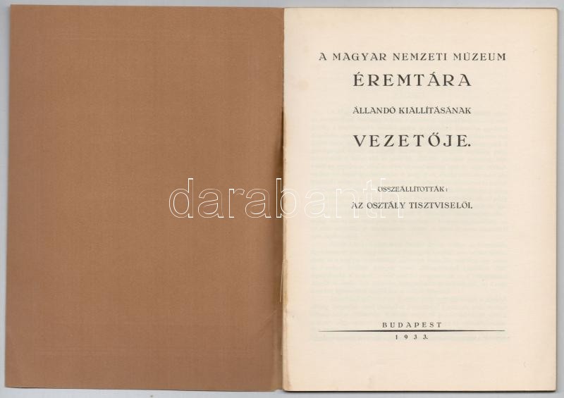 Description: A Magyar Nemzeti Múzeum éremtára állandó kiállításának vezetője. Összeállították: Az osztály tisztviselői. Budapest, 1933. Használt, de nagyon szép állapotban.
