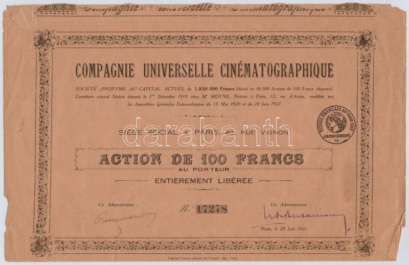 https://www.darabanth.com/en/318-Online-auction/318.0/Numismatics/Shares-and-Tickets~1000004/Franciaorszag-Parizs-1920-Egyetemes-Filmtarsasag-reszvenye-100Fr-rol-belyegzessel-kC3~II1683300