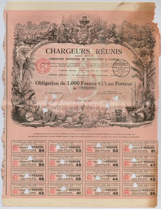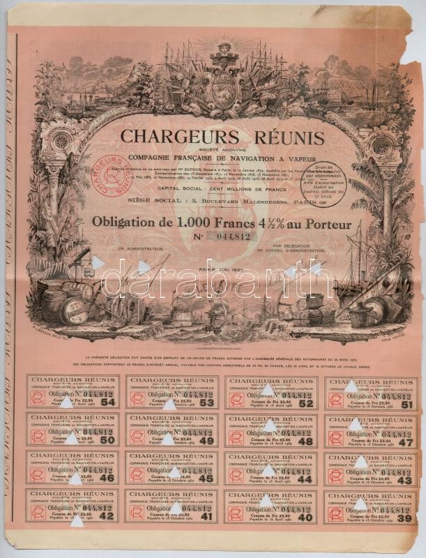 https://www.darabanth.com/en/318-Online-auction/318.0/Numismatics/Shares-and-Tickets~1000004/Franciaorszag-Parizs-1930-Chargeurs-Reunis-kolcsonkotveny-1000Fr-rol-6x-kozte-sorsz~II1678331