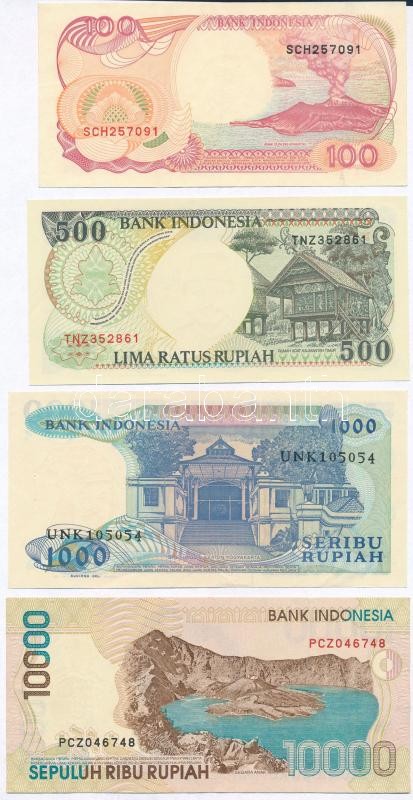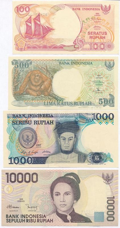 Indonézia 1987. 1000R + 1992. 100R + 500R + 1998. 10.000R T:II-III szép papír