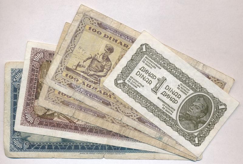 Jugoszlávia 1944. 1D + 1946. 100D (2x) + 1955. 5000D + 1963. 1000D T:III-