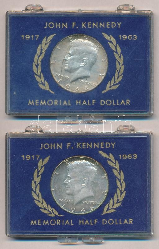 Description: Amerikai Egyesült Államok 1966-1968D 1/2$ Ag "Kennedy" (2xklf) mindkettő plasztik tokban T:1-
