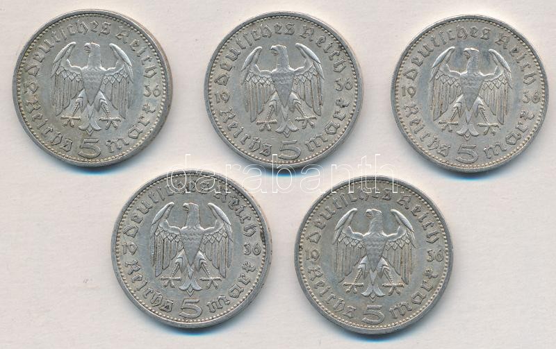 German Third Reich 1936A 5 Mark Ag "Hindenburg" (5x) C:XF