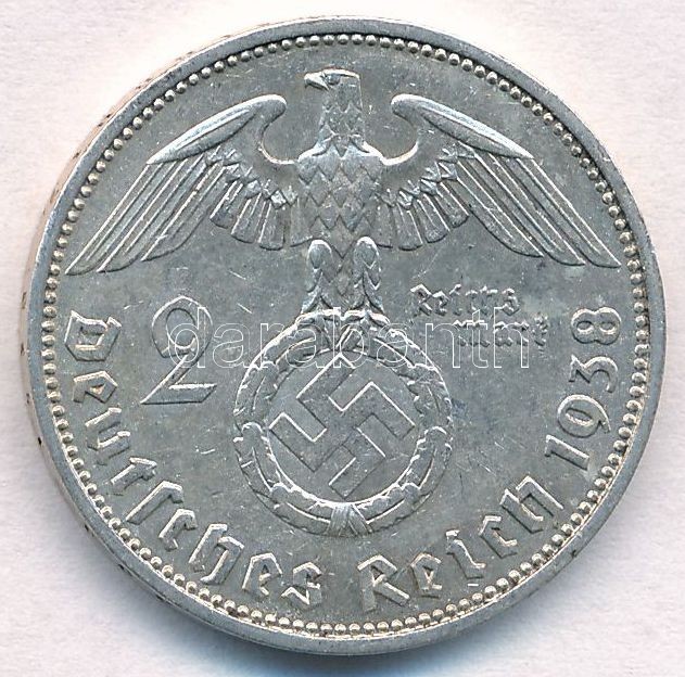 https://www.darabanth.com/en/318-Online-auction/318.0/Numismatics/Worldwide-silver-and-metal-coins~1000012/Nemet-Harmadik-Birodalom-1938A-2M-Ag-Hindenburg-T2---German-Third-Reich-1938A-2-Mark-Ag-Hindenb~II1754587