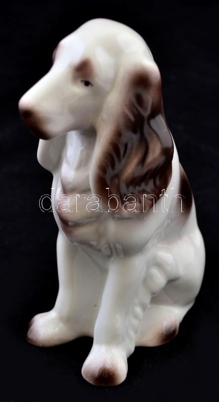 Hollóházi kutya, kézzel festett, jelzett, apró kopásokkal, m: 14,5 cm