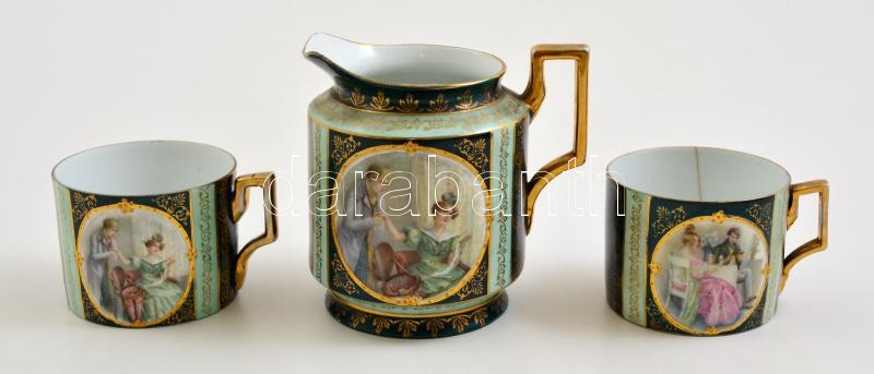 Victoria kiöntő 12 cm (hibátlan) + 2 teás csésze hajszálrepedésekkel / Jar flawless, partly hand painted, 2 mugs with cracks