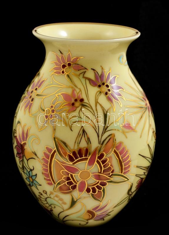 Zsolnay virág mintás váza, kézzel festett, jelzett, hibátlan, m: 12,5 ...