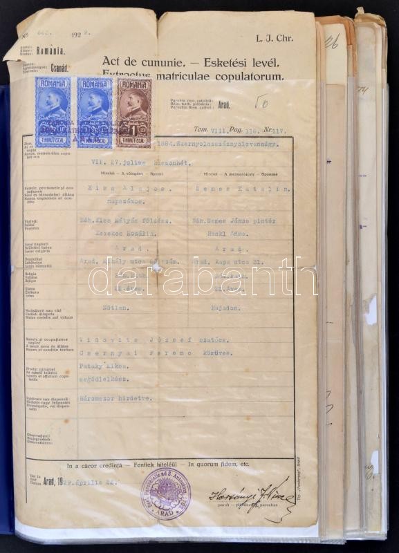 cca 1880-1940 kb 50 darabos okmánybélyeges okmány gyűjtemény gyűrűs berakóban vegyes témájú okmányokkal és nyomtatvnányokkal