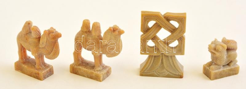 4 db kisméretű zsírkő faragvány: teve, oroszlán, stb., különböző méret...