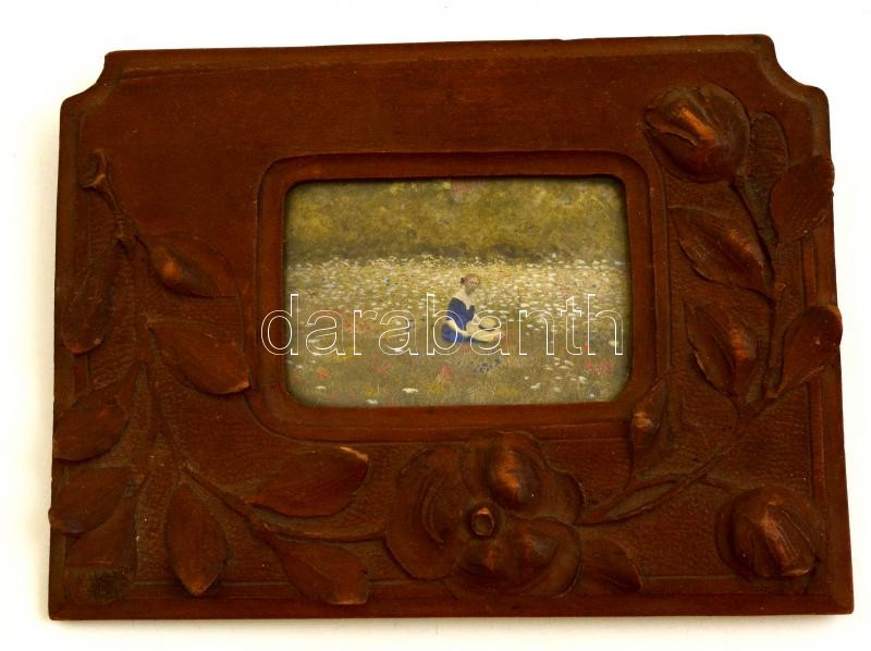 Dekoratív asztali fa képkeret, sérült, belső méret: 5,5×8 cm, külső mé...