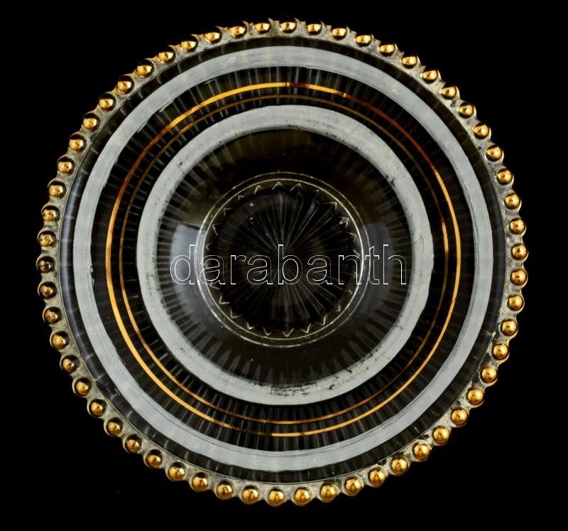 Festett üvegtálka, préselt, kopott, d:15 cm