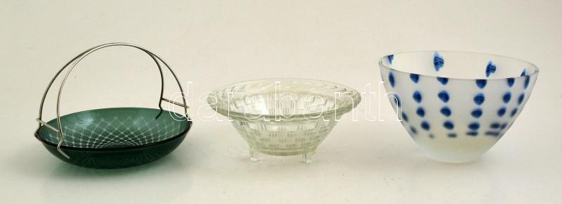 Vegyes üveg tétel: 3 db üveg kínáló tál, jelzés nélkül, d: 14,5 cm