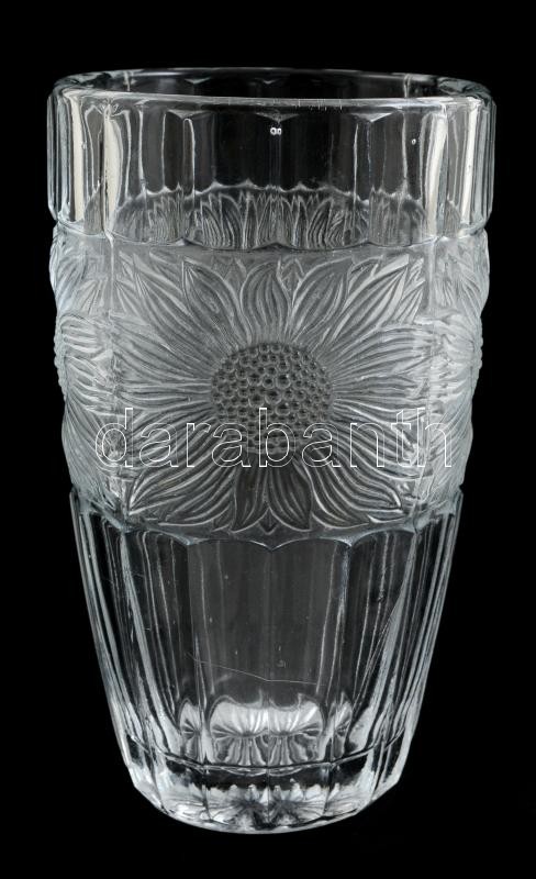 Virágmintás üveg váza, alján apró csorbákkal, m: 20 cm