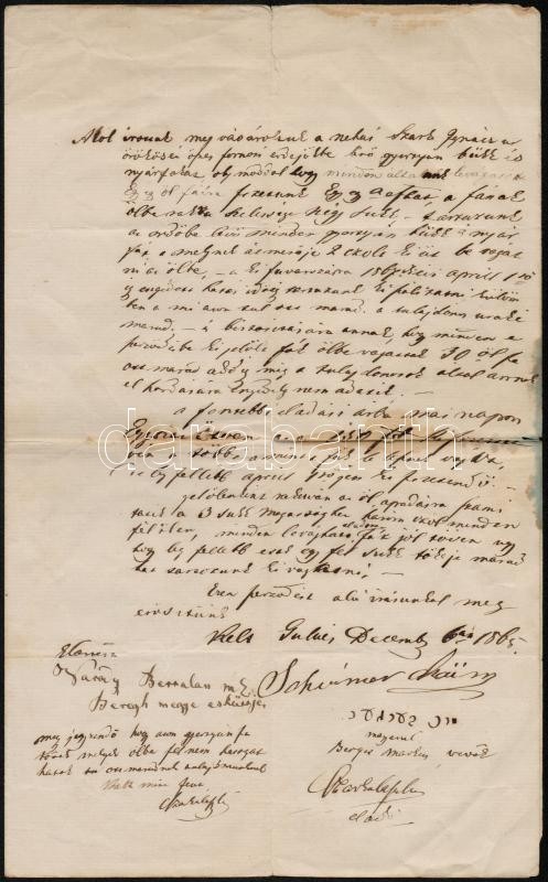 1865 Debrecen, magyar nyelvű adásvételi szerződés, héber betűs aláírással is