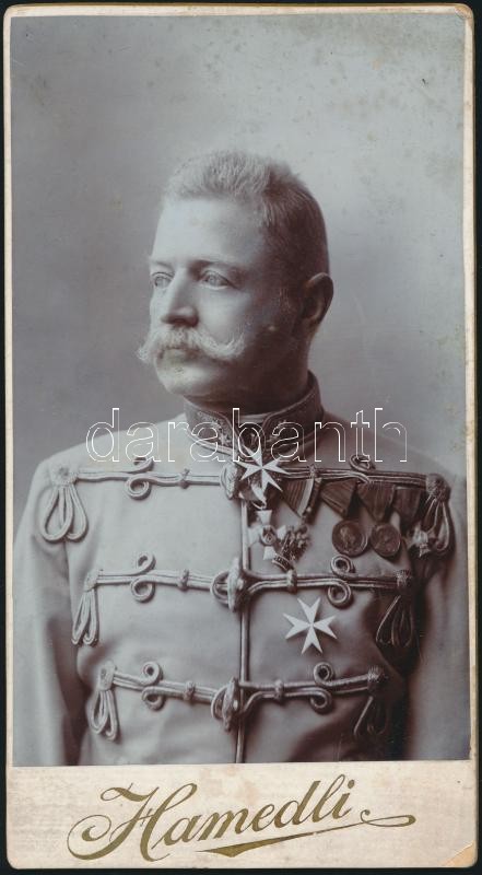 cca 1890 Gróf Schlippenbach István (1842-1910) altábornagy, a m. kir. varasdi 10. honvéd gyalogezred parancsnoka, keményhátú fotó, Hamedli Gyula, Pécs-Kaposvár, 20x11 cm./ cca 1890 Graf Stephan von Schlippenbach (1842-1910) k.u.k. fieldmarshallieutenant, commander of 10th Varazdin Honved Hussars, board photo, Gyula Hamedli, Pécs-Kaposvár, 20x11 cm.