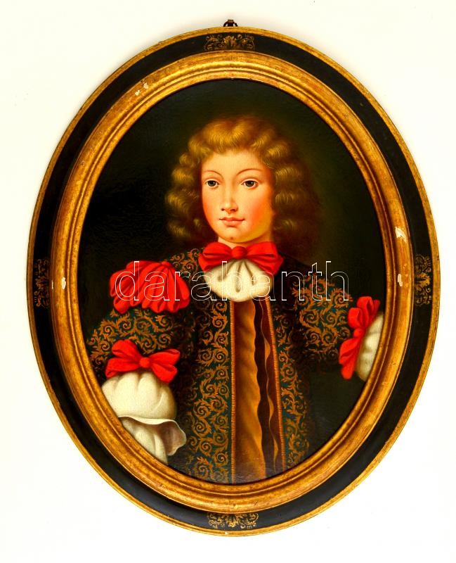 Jelzés nélkül: Bieder fiú portré cca 1850. Olaj, vászon, antik keretbe...