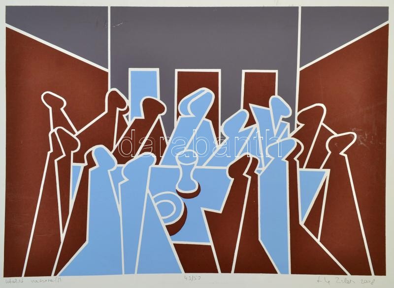 Lukács Tibor (1960-): Utolsó vacsora. Szitanyomat, papír, jelzett, fol...