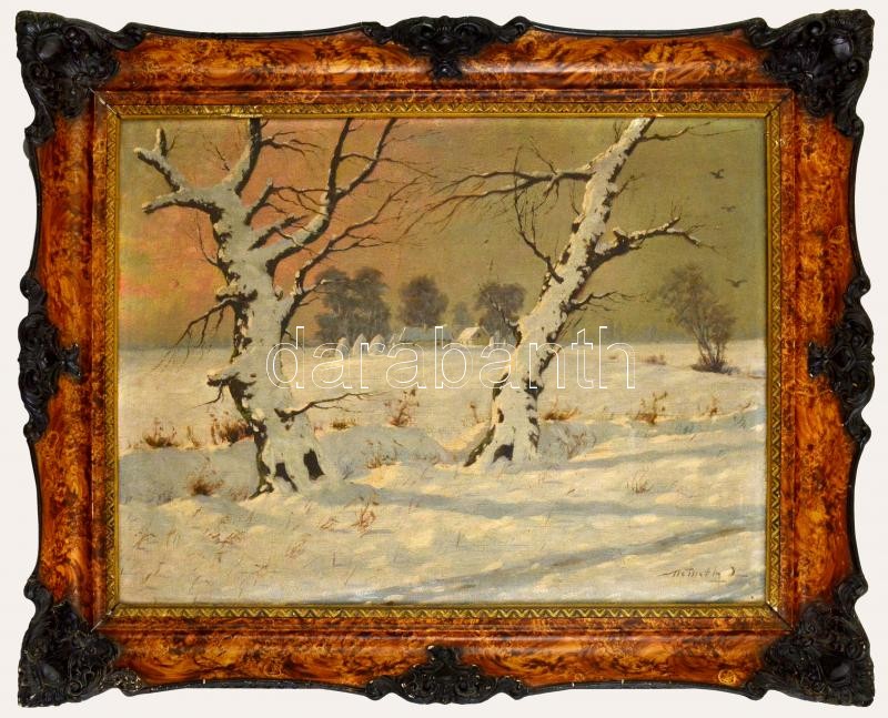Németh jelzéssel: Téli táj. Olaj, vászon, dekoratív keretben, 60×80 cm