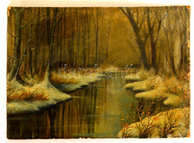 Neogrády jelzéssel: Téli patak. Olaj, papír-karton, sérült, 37×53 cm