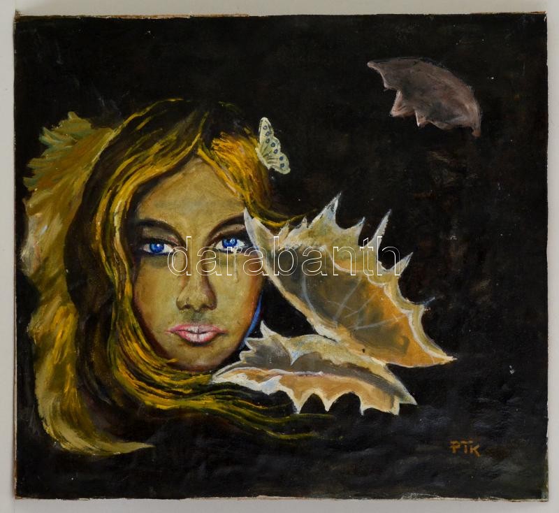 PTK jelzéssel: Női arc. Olaj, farost, 54×60 cm