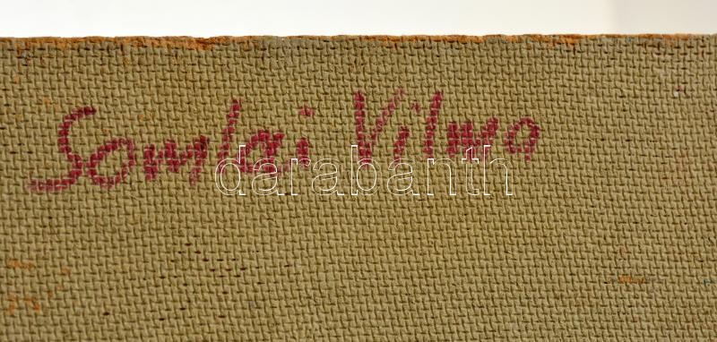 Somlai Vilma (1938-2007): Napos táj, olaj, farost, hátulján jelzett, 4...