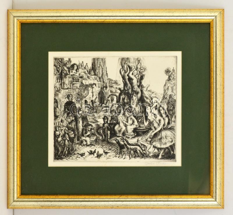 Szabó Vladimír (1905-1991): Olasz város. Rézkarc, papír, jelzett, üveg...