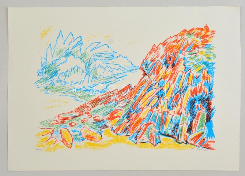 Szilárd Klára (1921- ): Sziklák, színes szitanyomat, papír, jelzett, számozott (33/75), 38×53 cm