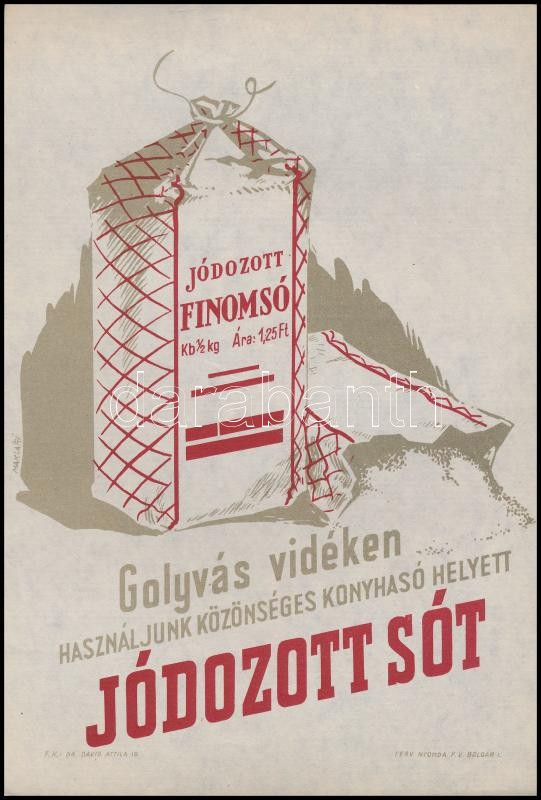 cca 1950 Maklári Ernő (?-?): Jódozott só reklám villamos plakát, 24x16,5 cm