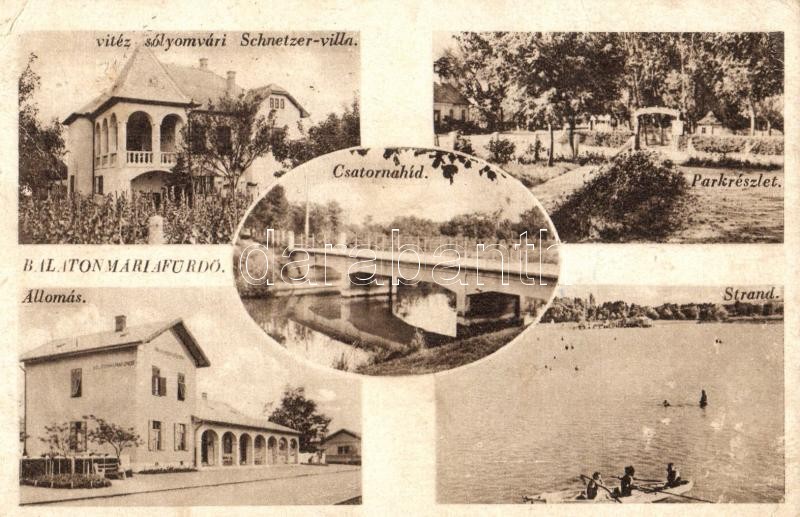 Balatonmáriafürdő, Vitéz Sólyomvári Schnetzer villa, park, csatornahíd, strand, Vasútállomás (Rb)