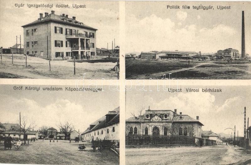 Budapest IV. Újpest, Pollák-féle textilgyár, Gyár igazgatósági épület, Városi bérházak, Gróf Károlyi uradalom Káposztásmegyeren