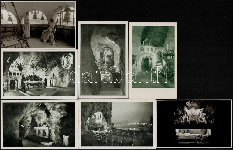 Budapest XI. Gellért-hegyi lourdesi barlang, Magyarok Nagyasszonya sziklatemplom - 7 db régi képeslap, belsők