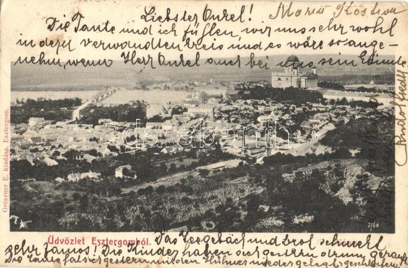 Esztergom, látkép, Bazilika. Grószner E. kiadása (EK)