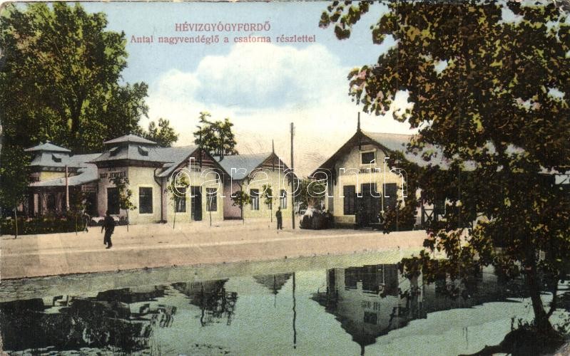 Hévízgyógyfürdő, Antal nagyvendéglő a csatorna részlettel, Jókai ház (EK)