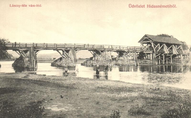 Hidasnémeti, Lánczy-féle vám híd, mosóasszonyok a folyóban. Zöllner Gy...
