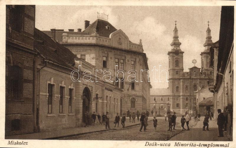 Miskolc, Deák utca, Minorita templom, Kereskedelmi iskola (fa)
