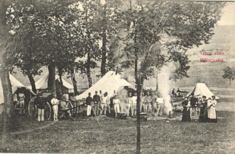 Piliscsaba, Tábori sütés, katonák. Újhelyi Lajos kiadása
