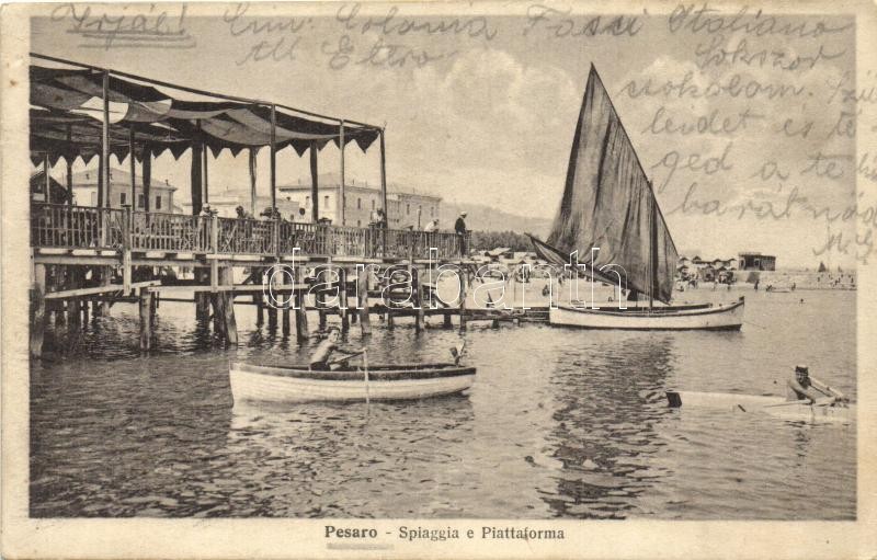 Pesaro, Spiaggia e Piattaforma / beach, rowers, bathing people (EK)