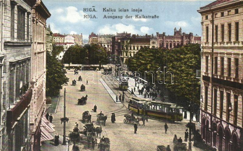 Riga, Kalku ielas izeja / Ausgang der Kalkstrasse / street view, trams...