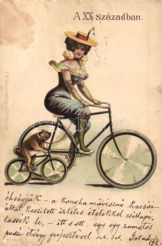 A XX. században / Lady with dog on bicycle. E.A. Schwerdtfeger & Co. No. 3222. litho (EK)