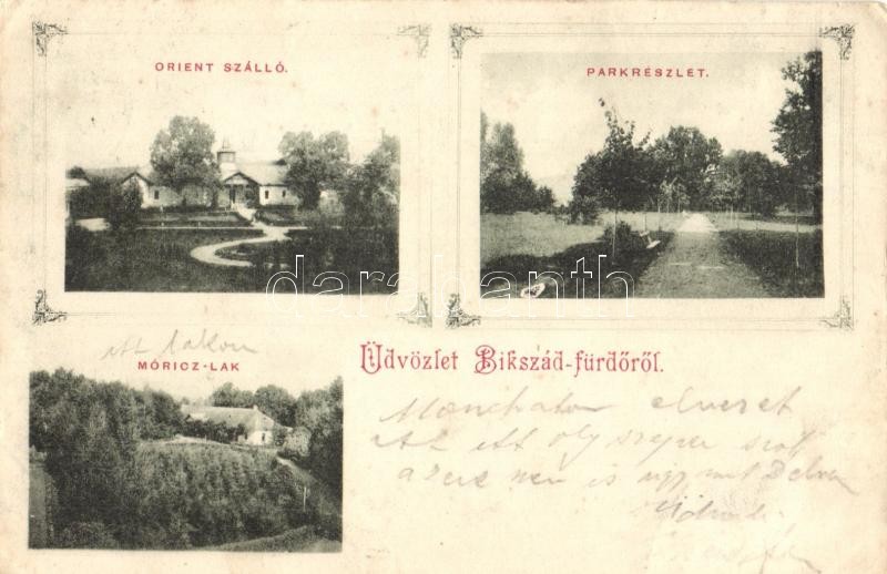 Bikszád-fürdő, Baile Bixad; Orient szálloda, park, Móricz-lak. Czettel...