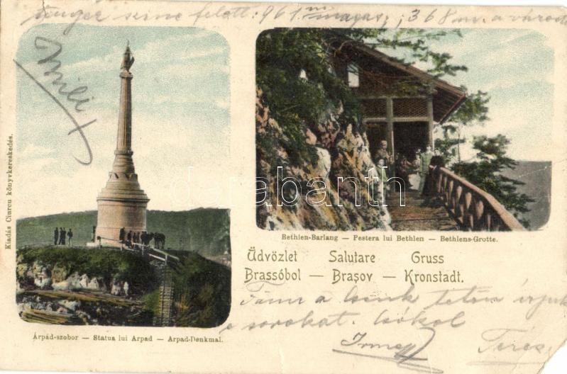 Brassó, Kronstadt, Brasov; Árpád-szobor, Bethlen-barlang / Statua lui ...