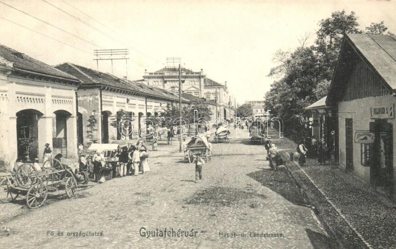 https://www.darabanth.com/en/318-Online-auction/318.0/Postcards/Transylvania~2500012/Gyulafehervar-Karlsburg-Alba-Iulia-Fo-es-Orszagut-utca-utcai-arusok-Hillinger-S-uzlete~II1753745