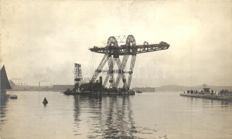 1913 Pola, Schwimmkrahn / Óriás úszó daru a pola-i hadihajógyárban / K.u.K. Kriegsmarine, giant floating crane in the battleship factory. Phot. Alois Beer