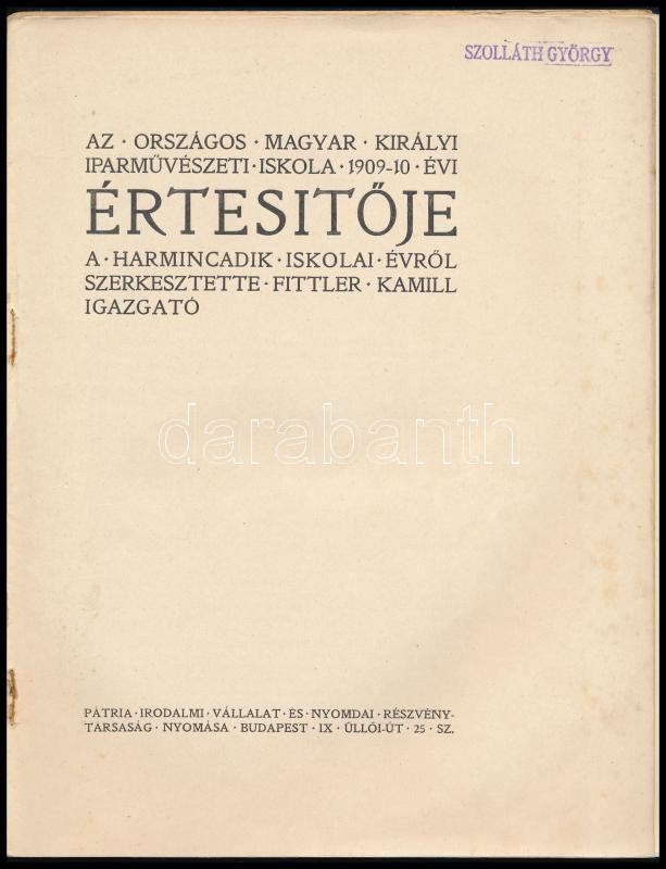 1910 Az Országos Magyar Királyi Iparművészeti Iskola 1909-1910 évi ért... https://www.darabanth.com/en/319-Online-auction/319.0/Books/Books-Architecture-Art~1500006/1910-Az-Orszagos-Magyar-Kiralyi-Iparmuveszeti-Iskola-1909-1910-evi-ertesitoje-a-harmincadik-~II1761593