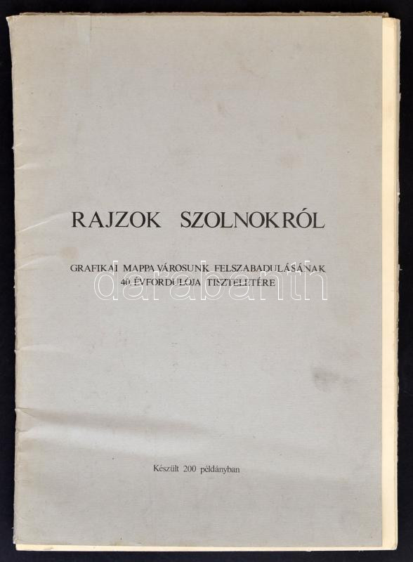 Rajzok Szolnokról - Grafikai mappa városunk felszabadulásának 40. évfordulója tiszteletére. Szerkeszti Menyhért László. Szolnok, 1984, Damjanich János Múzeum. 18 ív A/3-as grafika, kissé sérült kiadói papírmappában. Készült összesen 200 példányban.