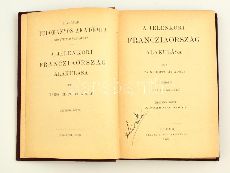 Taine Hippolit Adolf: A jelenkori Franciaroszág alakulása. IV. kötet: ... https://www.darabanth.com/en/319-Online-auction/319.0/Books/Books-History~1500004/Taine-Hippolit-Adolf-A-jelenkori-Franciaroszag-alakulasa-IV-kotet-A-forradalom-III-kotet-F~II1616656